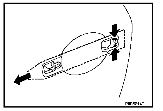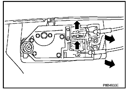 8. While pulling the outside handle, remove door key cylinder assembly.