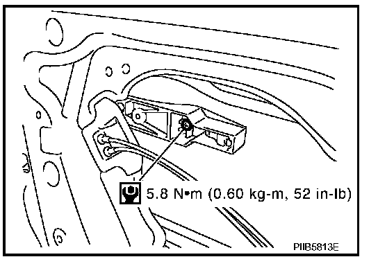 3. Remove the front door window and front door module assembly. Refer to "FRONT DOOR GLASS AND REGULATOR".