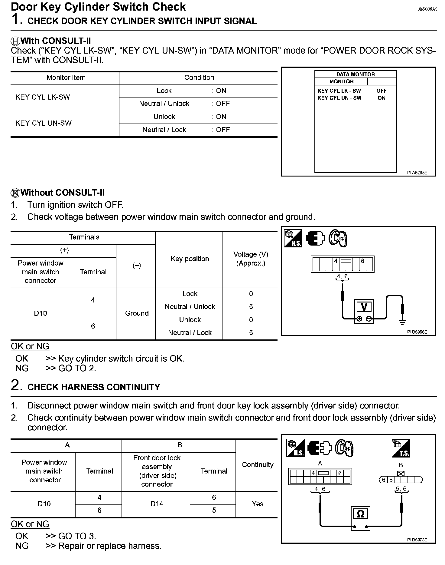 Door Key Cylinder Switch Check (Steps 1 - 2):