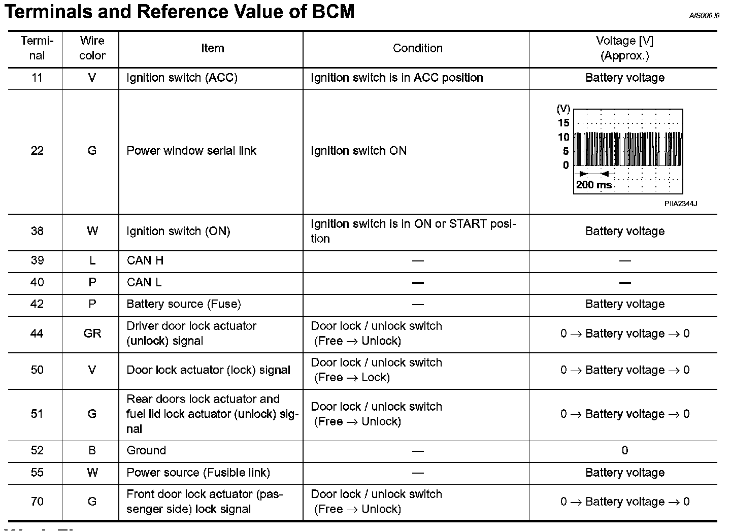 Terminal And Reference Value Of BCM: