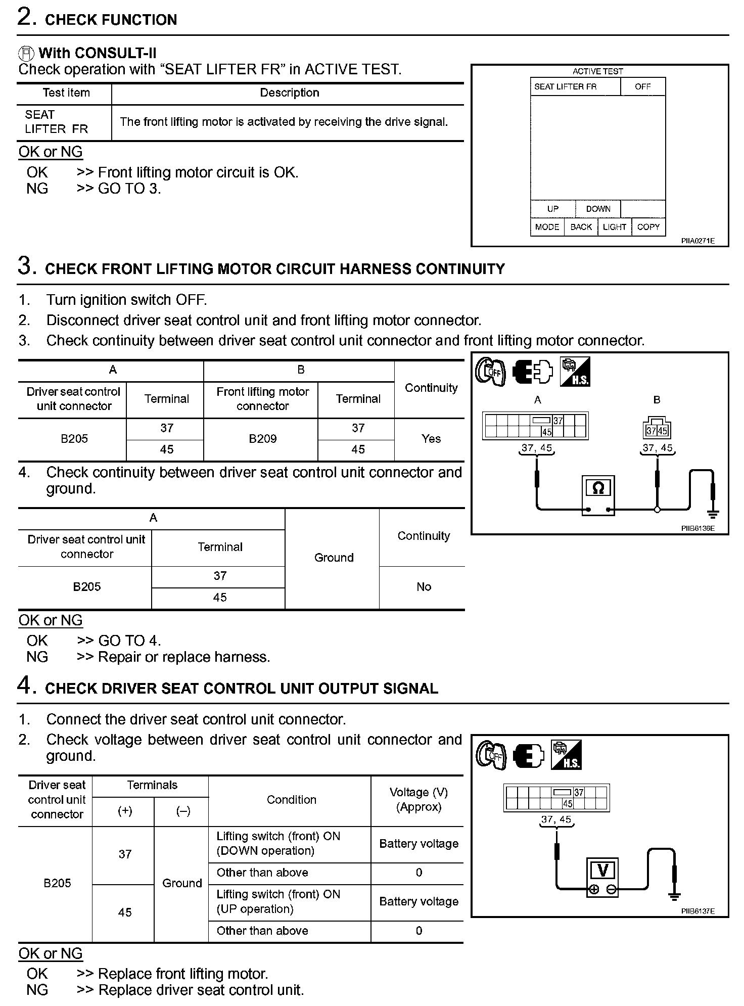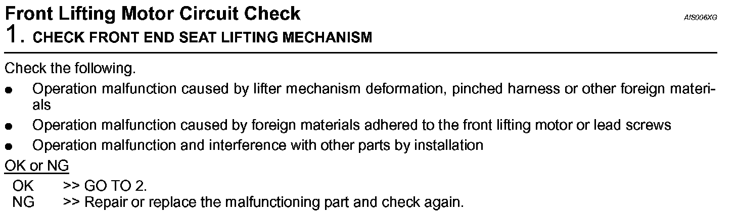 Front Lifting Motor Circuit Check