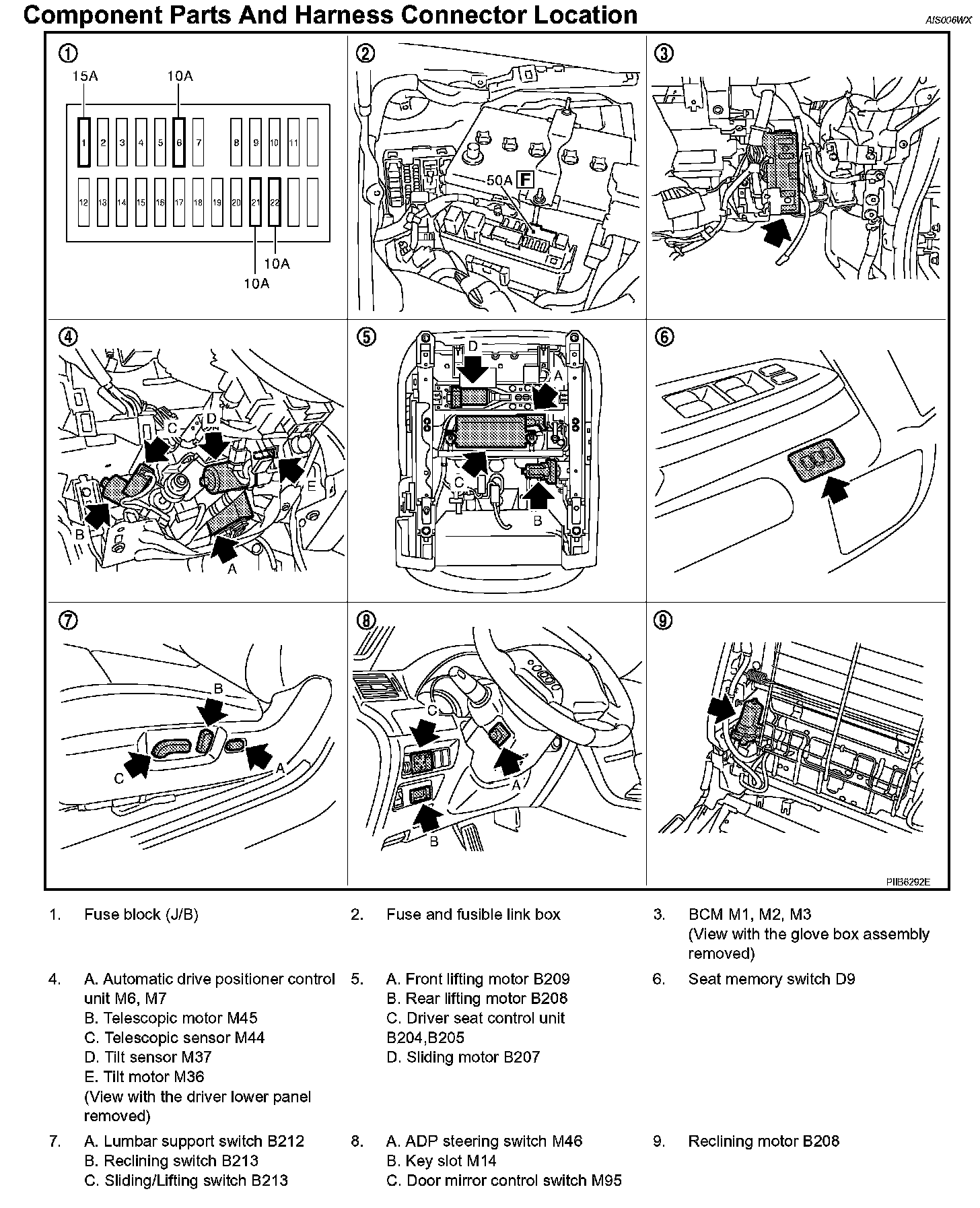 Component Parts And Harness Connector Location: