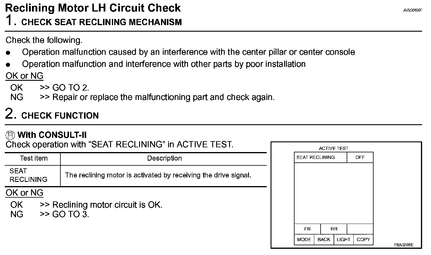 Reclining Motor LH Circuit Check (Steps 1 - 2):