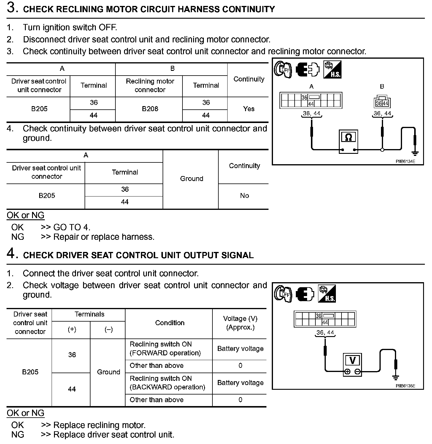 Reclining Motor LH Circuit Check (Steps 3 - 4):