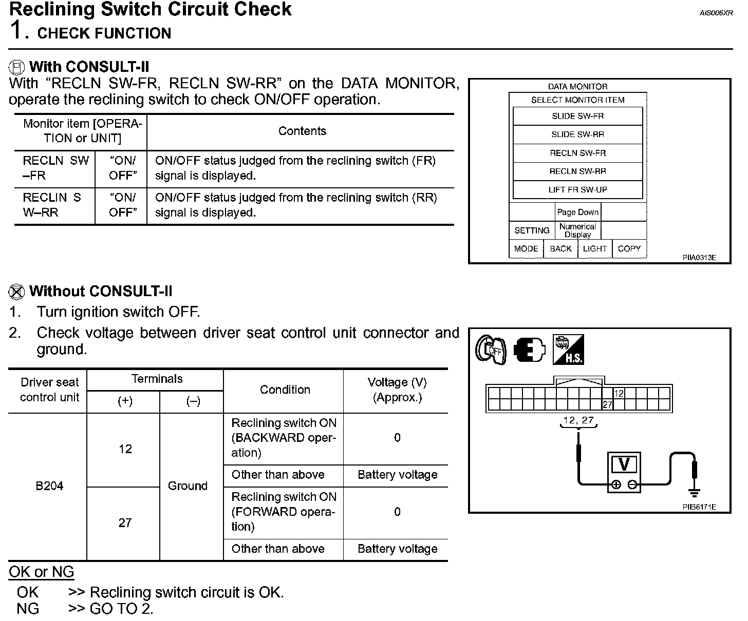 Reclining Switch Circuit Check