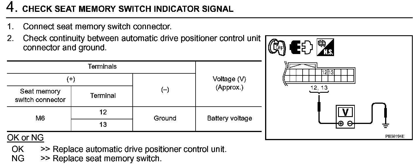 Seat Memory Indicator Lamp Circuit Check (Step 4):
