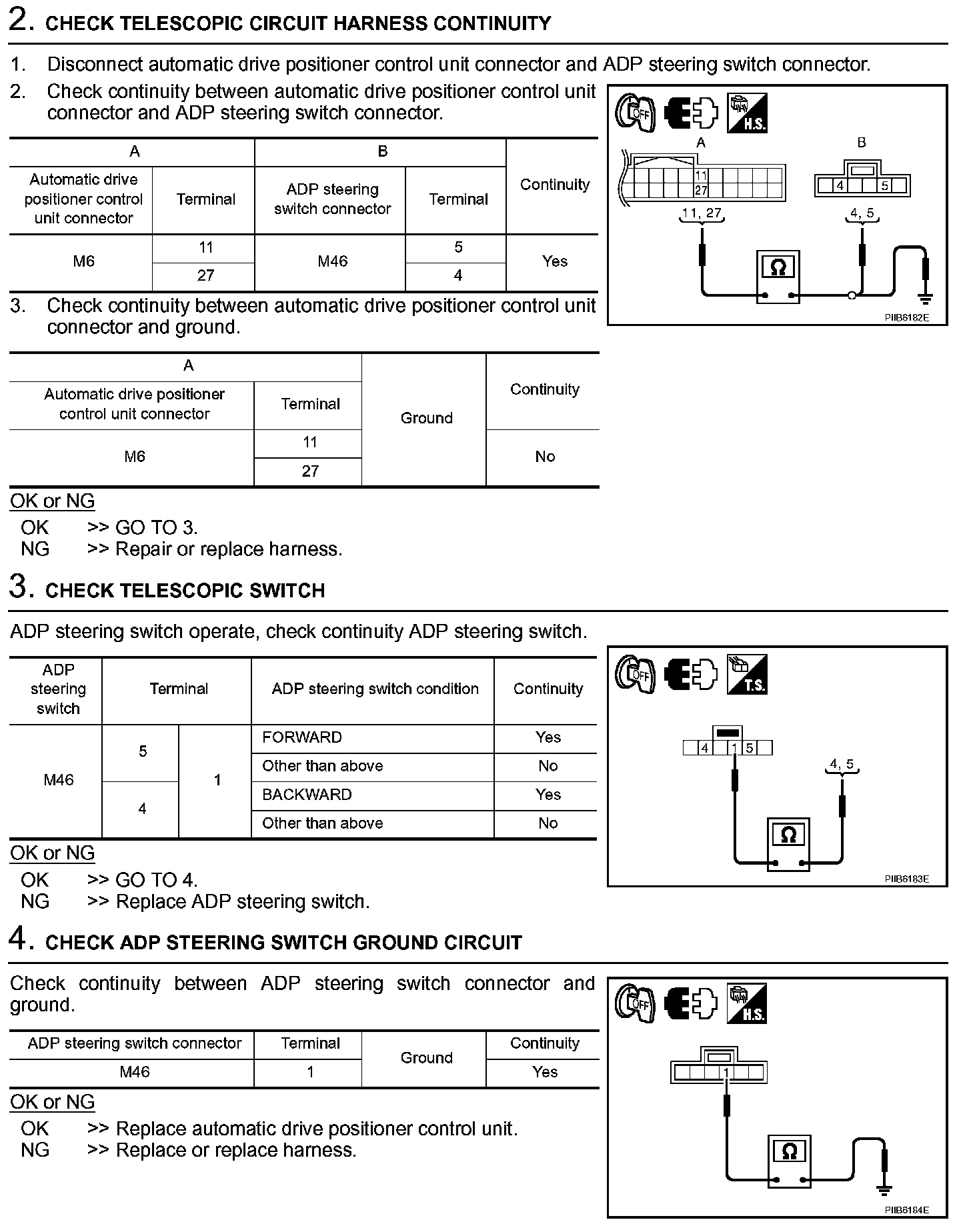 Telescopic Switch Circuit Check (Steps 2 - 4):