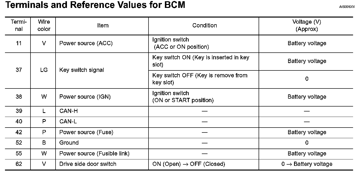 Terminals And Reference Values For BCM: