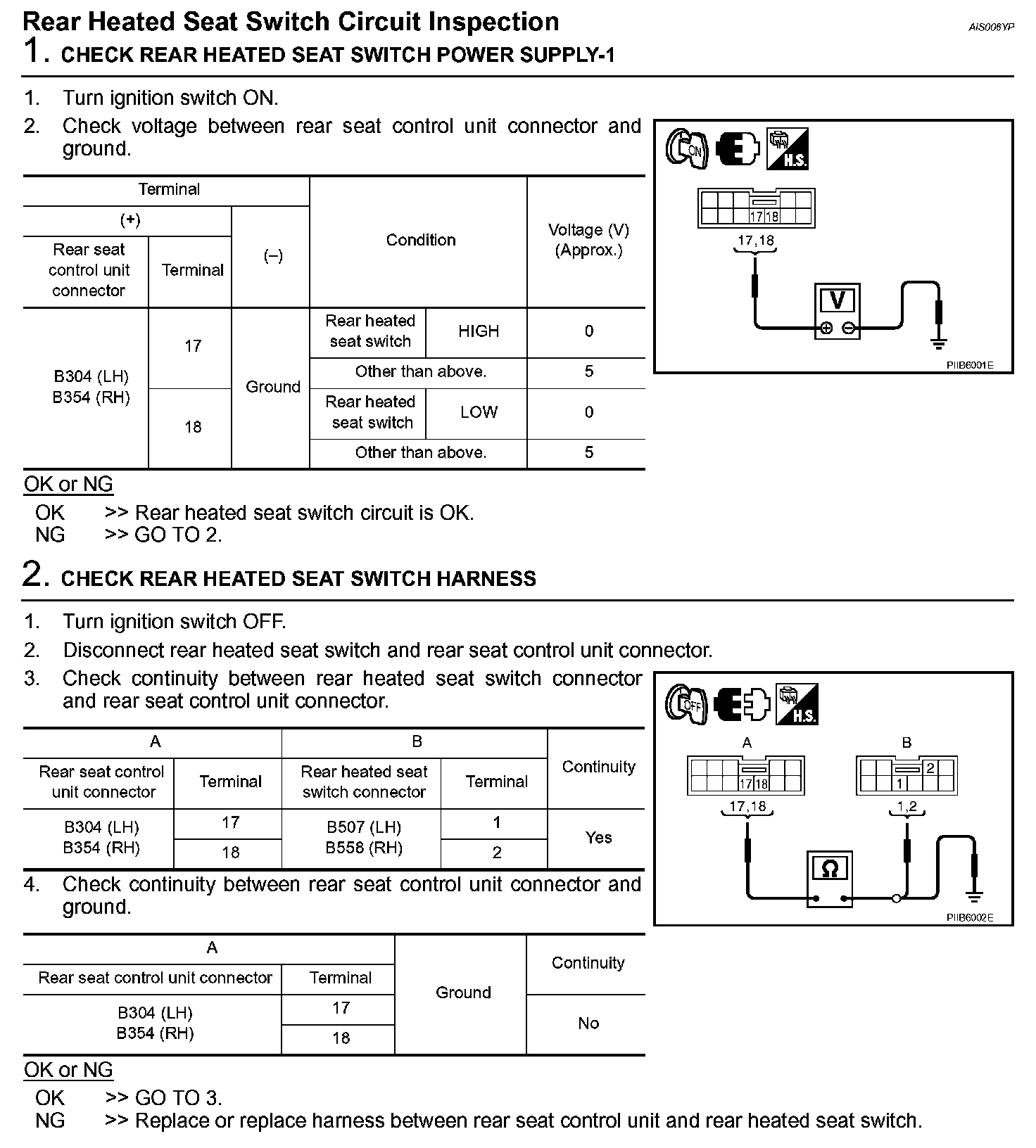 Rear Heated Seat Switch Circuit Inspection
