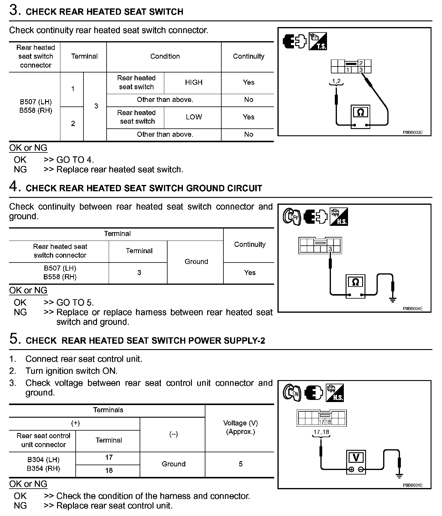 Rear Heated Seat Switch Circuit Inspection (Steps 3 - 5):