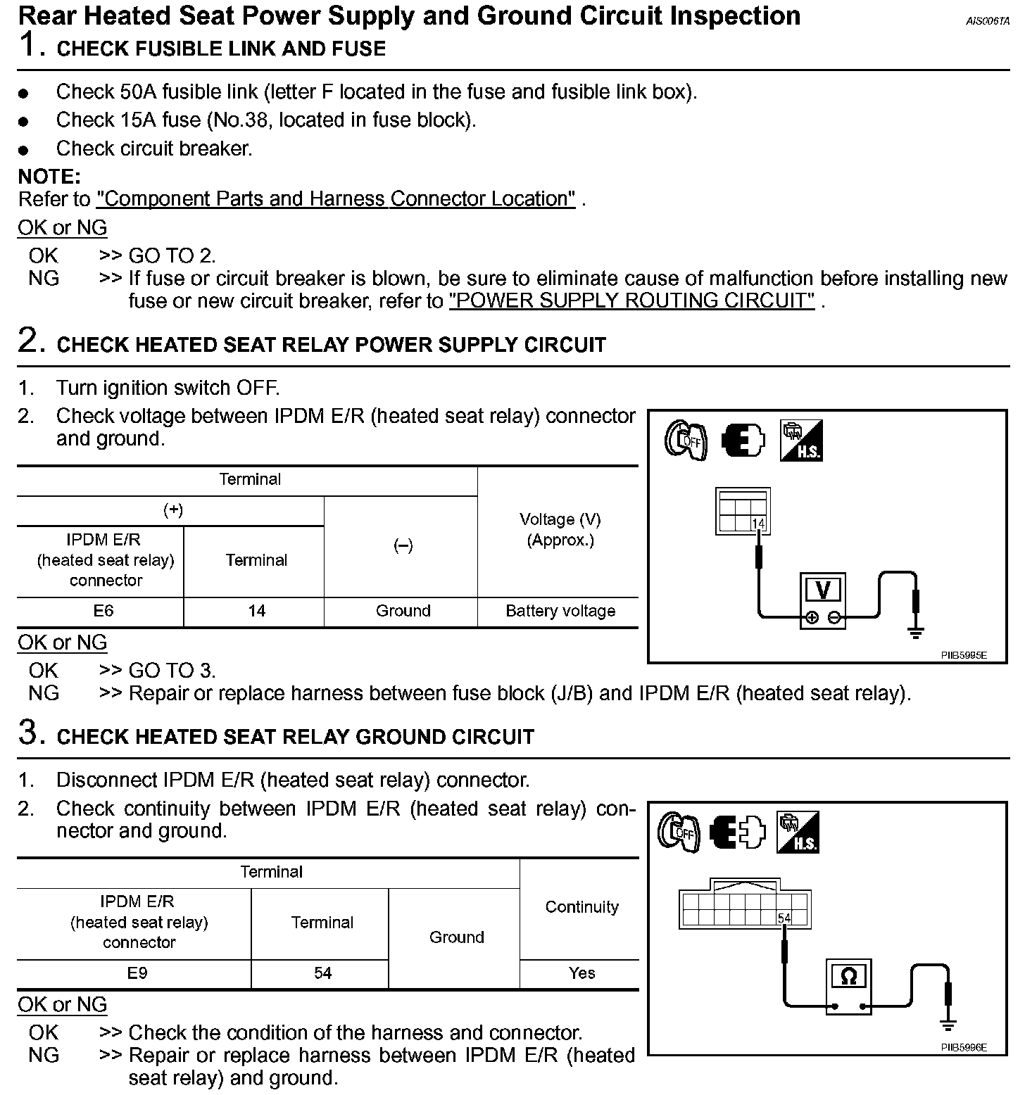 Rear Heated Seat Power Supply And Ground Circuit Inspection: