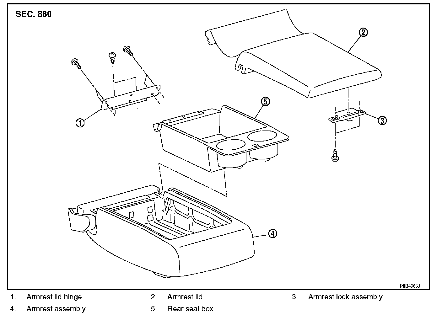 - Pull the rear seat box rearward and lift up, and then remove rear seat box from the armrest assembly.