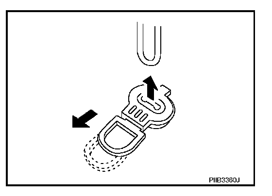 - Lift up seatback assembly from underneath, and then remove seatback assembly from seatback hook that is fixed to the vehicle.