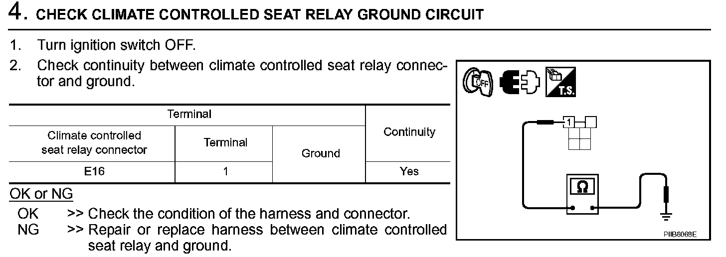 Climate Controlled Seat Control Unit Power Supply Circuit Check