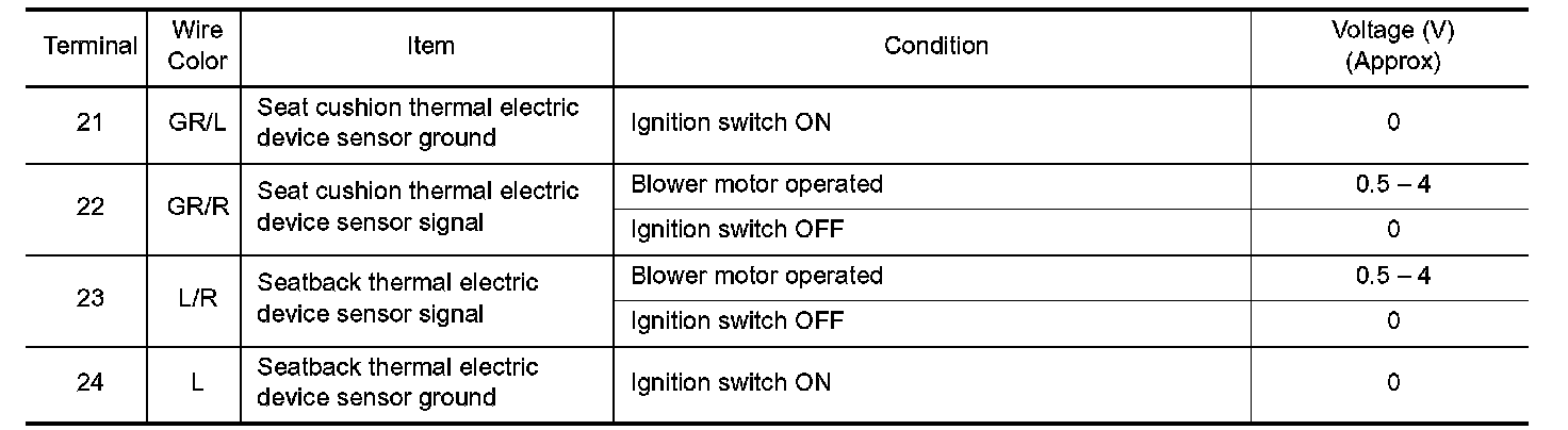 Terminals And Reference Values For Climate Controlled Seat Control Unit Part 2: