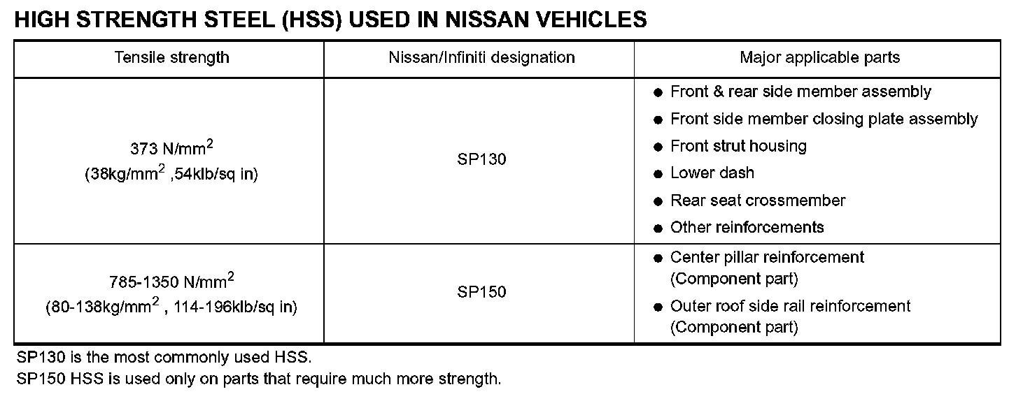 HIGH STRENGTH STEEL (HSS) USED IN NISSAN VEHICLES