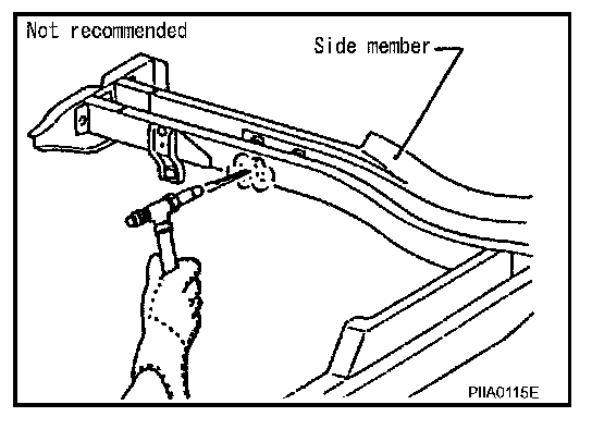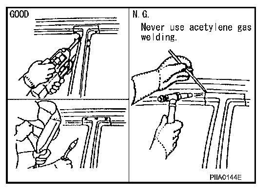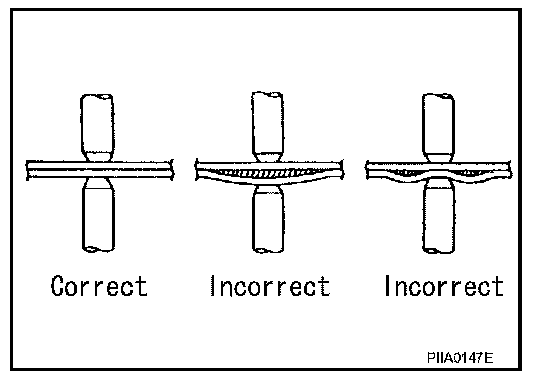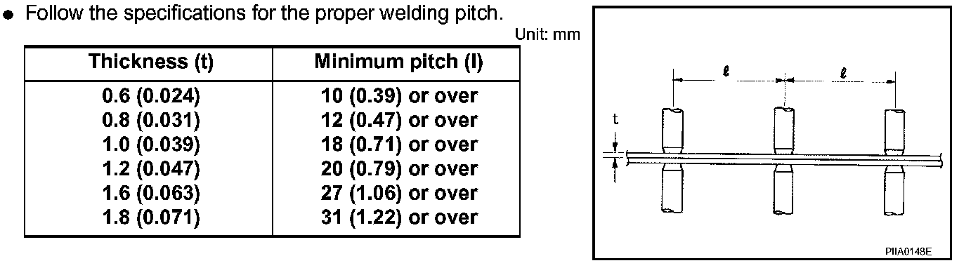 If spot welding is impossible, use M.I.G. welding. Do not use gas (torch) welding because it is inferior in welding strength.