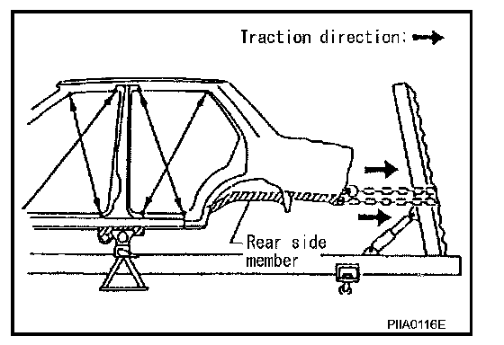 - When straightening body panels, use caution in pulling any HSS panel. Because HSS is very strong, pulling may cause deformation in adjacent portions of the body. In this case, increase the number of measuring points, and carefully pull the HSS panel.