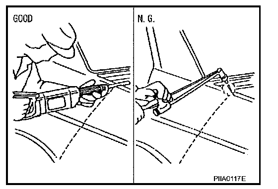 - Peel off a primer coat in the specified area where new adhesive is to be applied on rear fender (the replacing part).