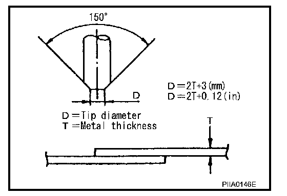 - The electrode tip diameter must be sized properly according to the metal thickness.