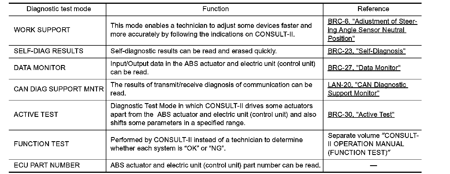 In a diagnosis function (main function), there are WORK SUPPORT, SELF-DIAG RESULTS, DATA MONITOR, CAN DIAG SUPPORT MNTR, ACTIVE TEST, FUNCTION TEST, ECU PART NUMBER.