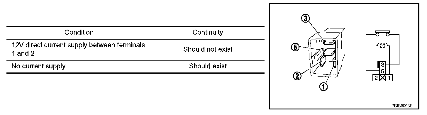 Check continuity between ICC brake hold relay terminals 3 and 5 under the following conditions.