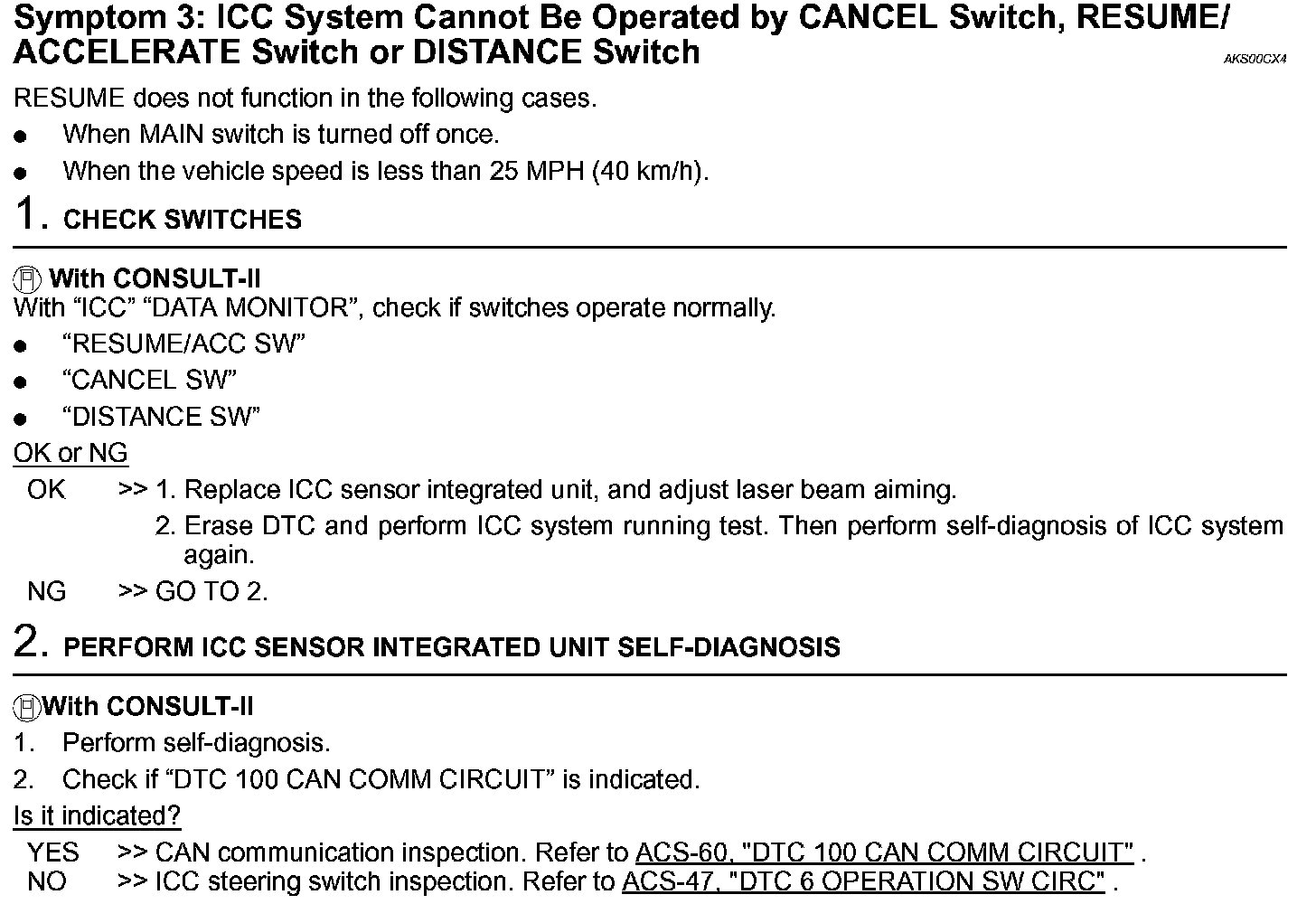 ICC System Cannot Be Operated By Cancel Switch, Resume/Accelerate Switch Or Distance Switch: