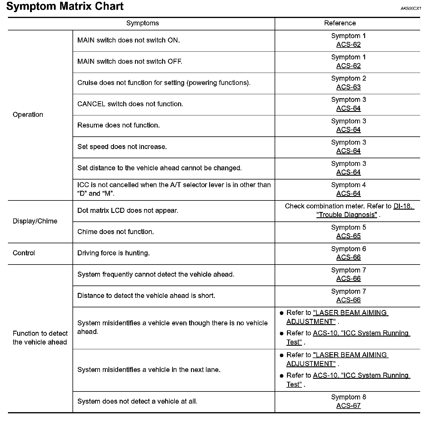 Symptom Matrix Chart: