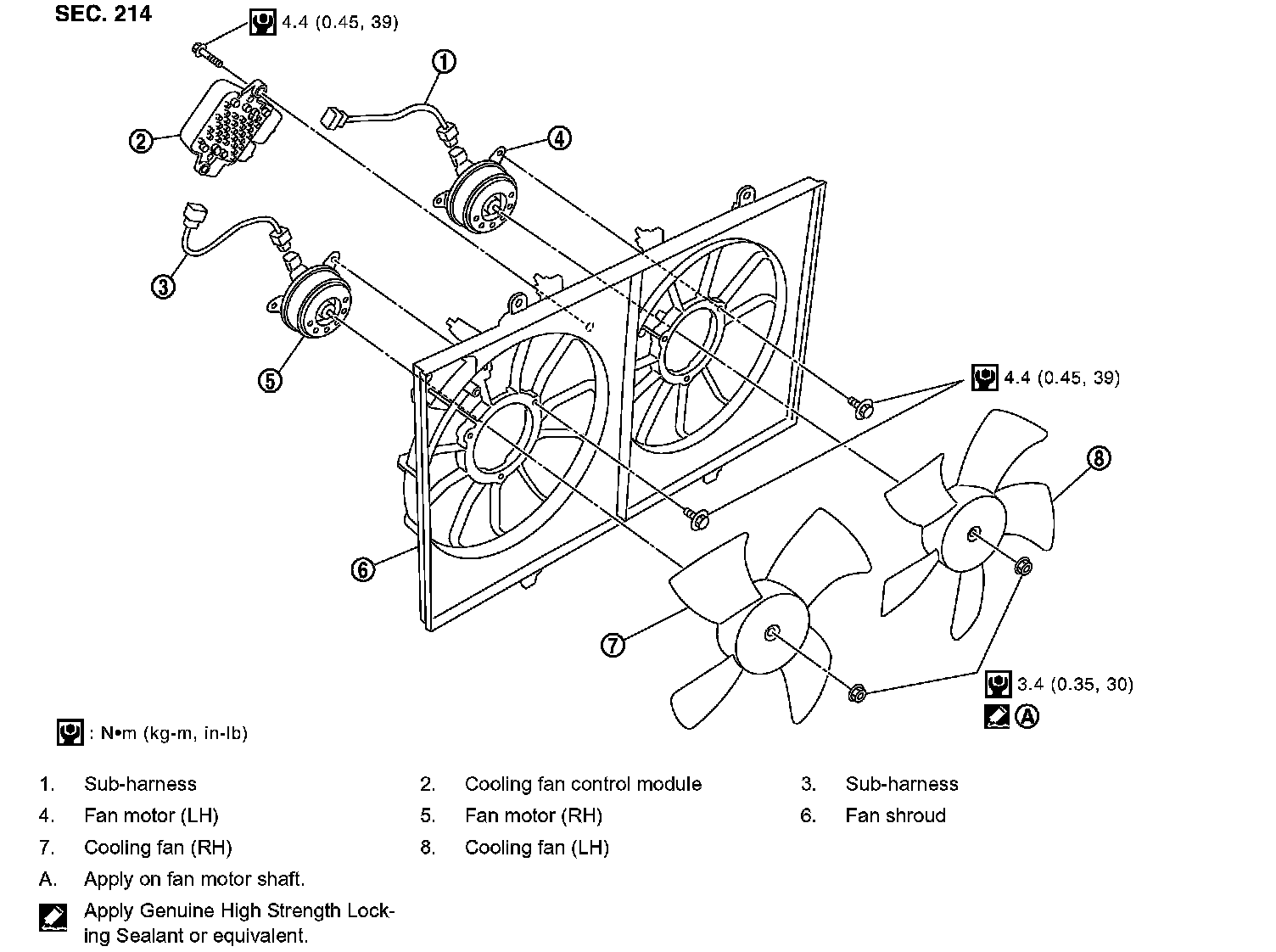 CAUTION: RH and LH cooling fans are different. Be careful not to misassemble them.