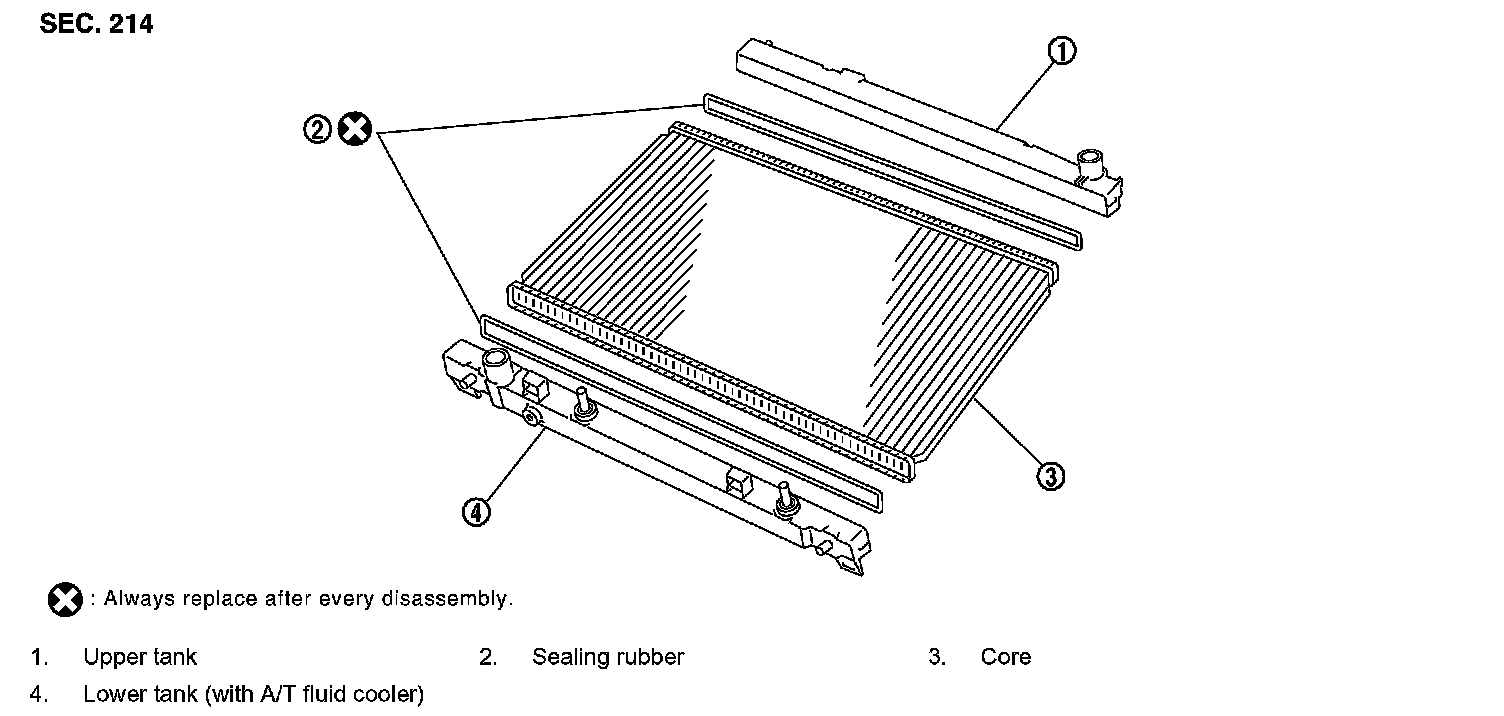 CAUTION: Do not disassemble lower tank and A/T fluid cooler.