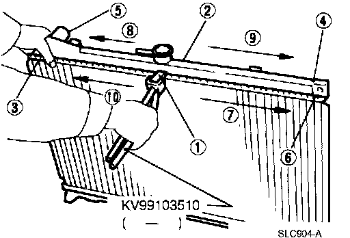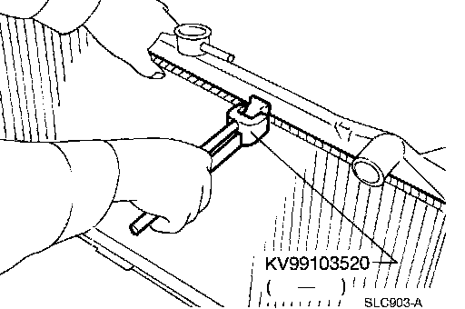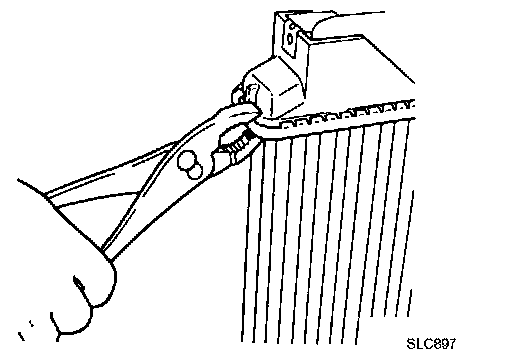 1. Remove upper and lower tanks with radiator plate pliers B (SST).