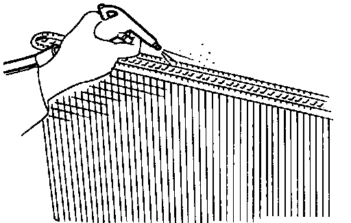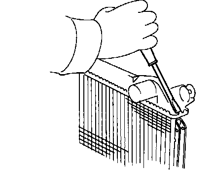 ^ In areas where radiator plate pliers B cannot be used, use flat-blade screwdriver to bend the edge up.