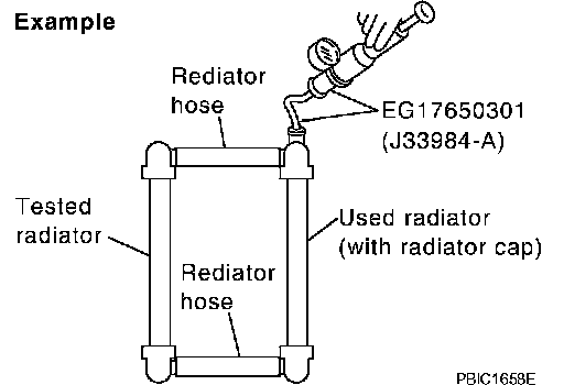 ^ provide used radiator and connect it to tested radiator using radiator hoses as shown in the figure.