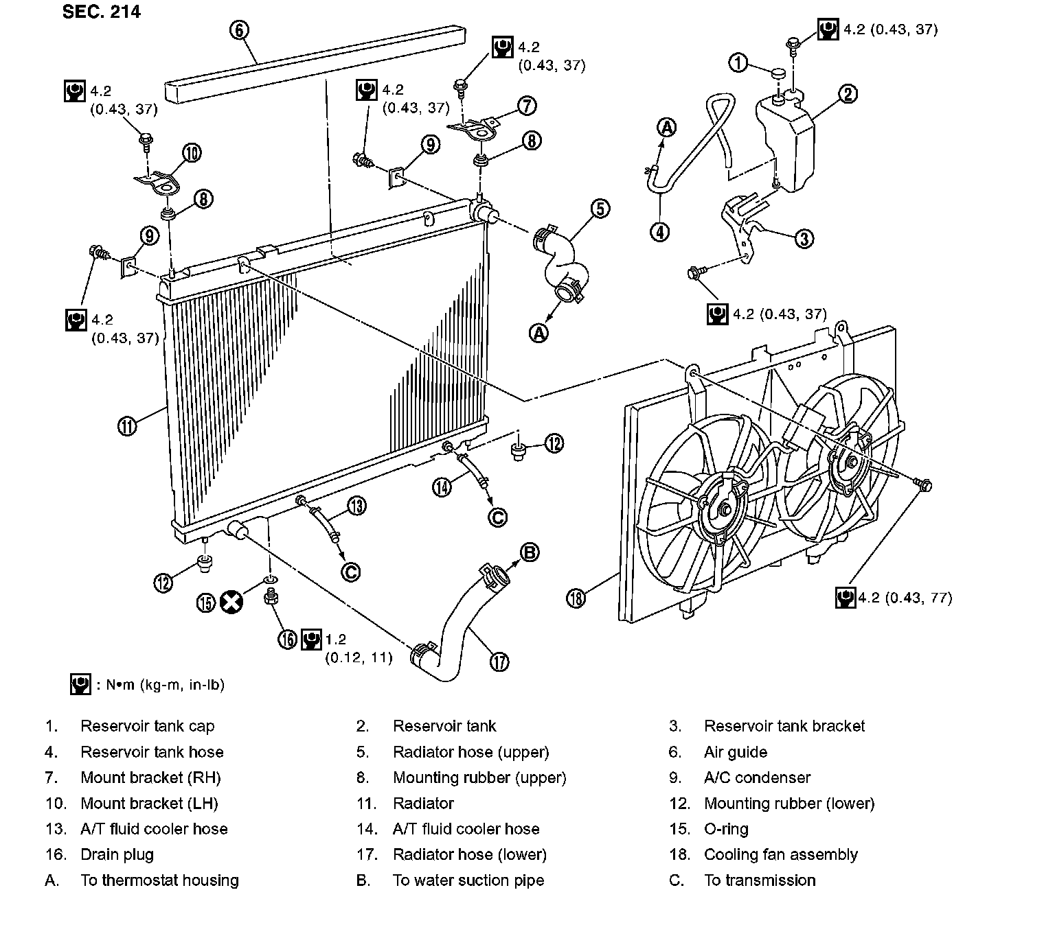 CAUTION: At this time, A/C condenser is on the lower end of radiator front surface. Minimize the movement to the rear side.