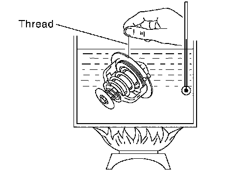 ^ Place a thread so that it is caught in the valves of the thermostat and water control valve. Immerse fully in a container filled with water. Heat while stirring. (The example in the figure shows thermostat.)