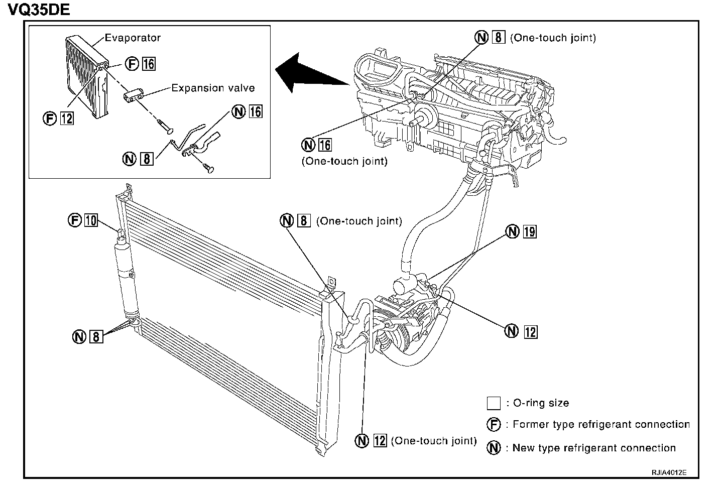 - High-pressure flexible hose to condenser (O-ring size: 12)