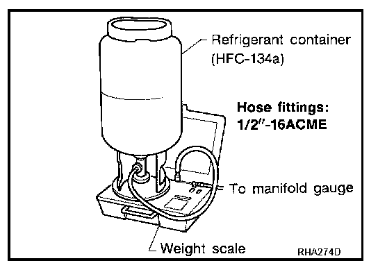 Verify that no refrigerant other than HFC-134a (R-134a) and specified lubricants have been used with the scale. If the scale controls refrigerant flow electronically, the hose fitting must be 1/2"-16 ACME.