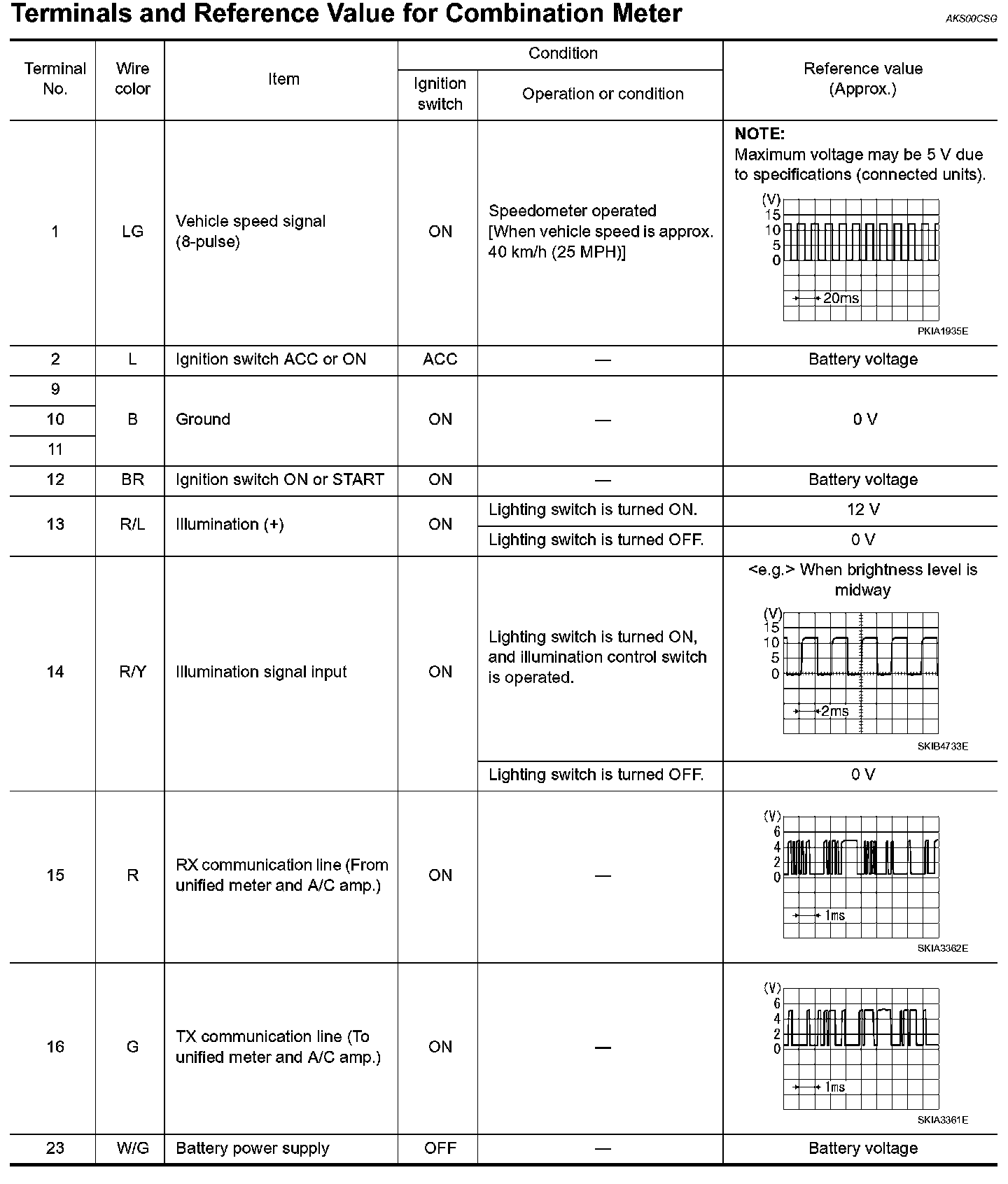 Terminals and Reference Value For Combination Meter