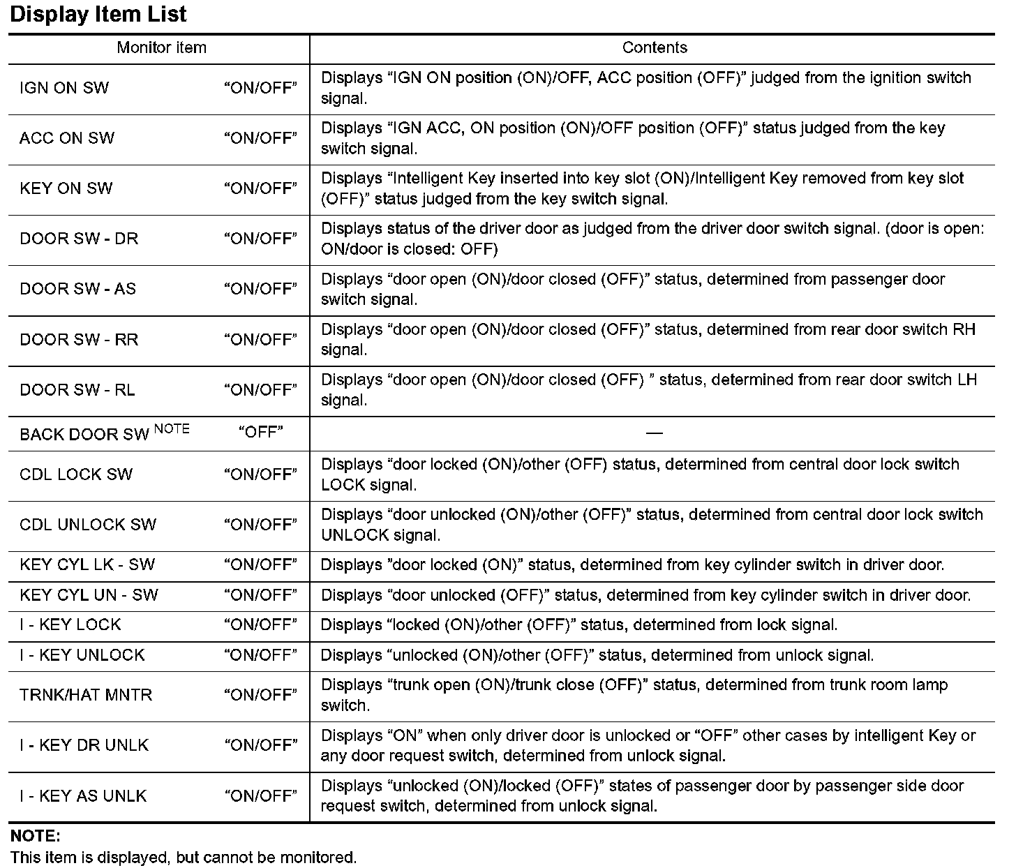 Display Item List - Data Monitor (Int Lamp):