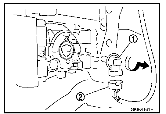 4. Disconnect connector (2), and remove bulb (1).