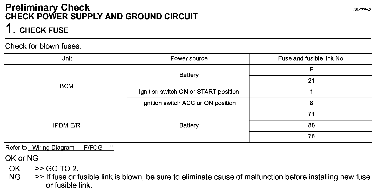 Check Power Supply And Ground Circuit (Step 1):