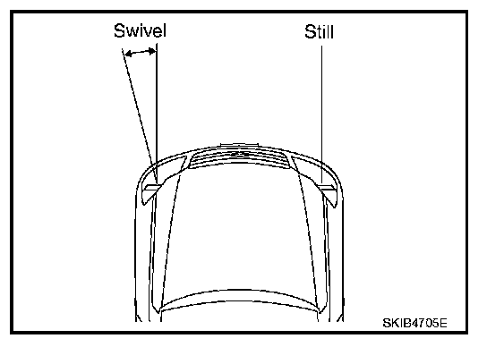 Straight-ahead position of low beam headlamps is adjusted by turning low beam headlamps to outside vehicle with specified swivel angle after turning it to the center of vehicle and making sure that it reaches the stopper.