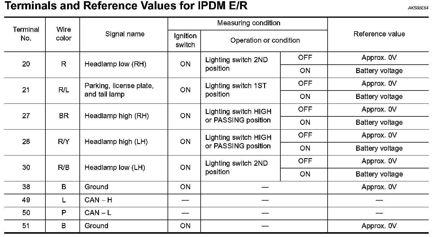 Terminals And Reference Values For IPDM E/R: