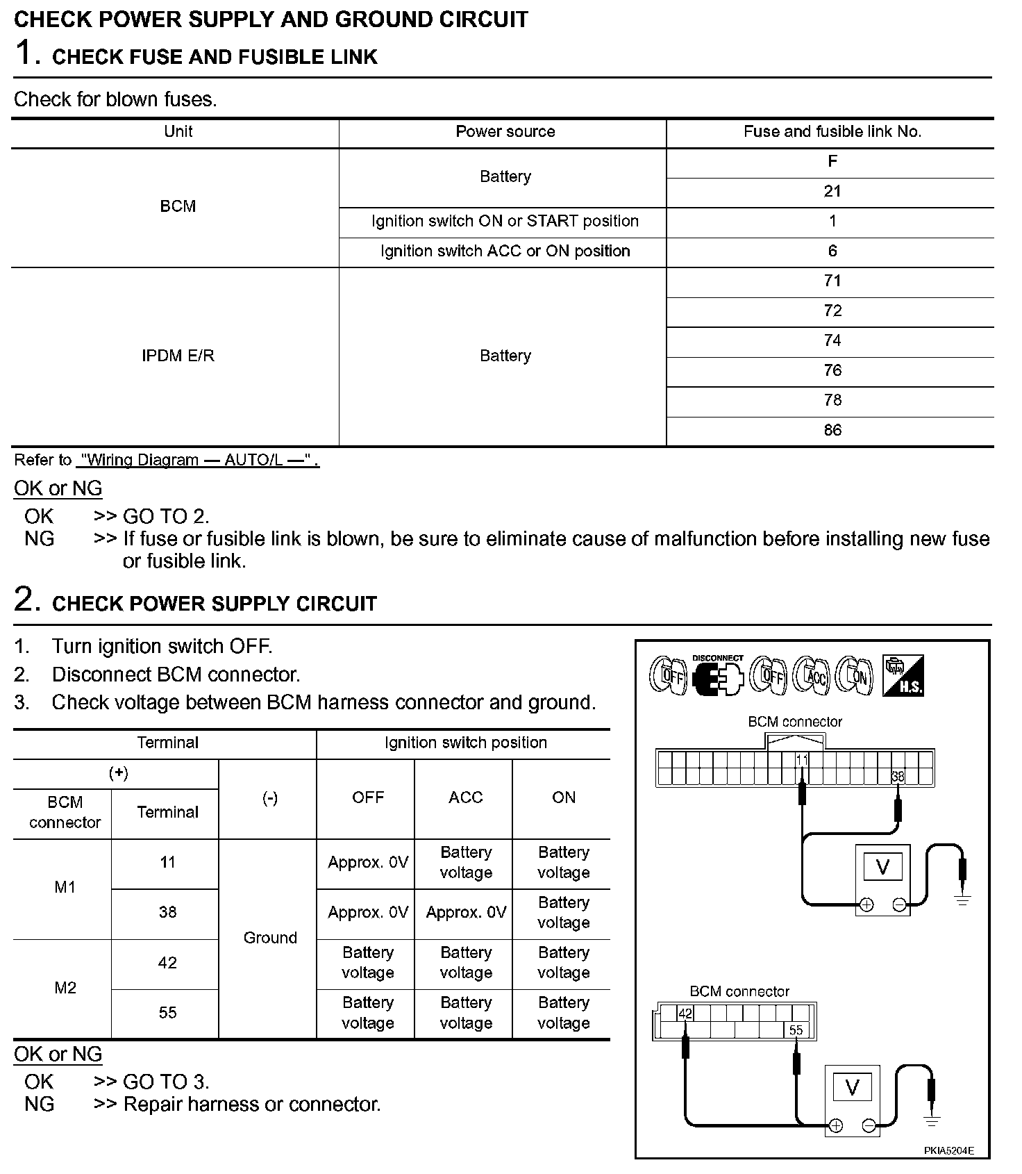 Check Power Supply And Ground Circuit (Steps 1 - 2):