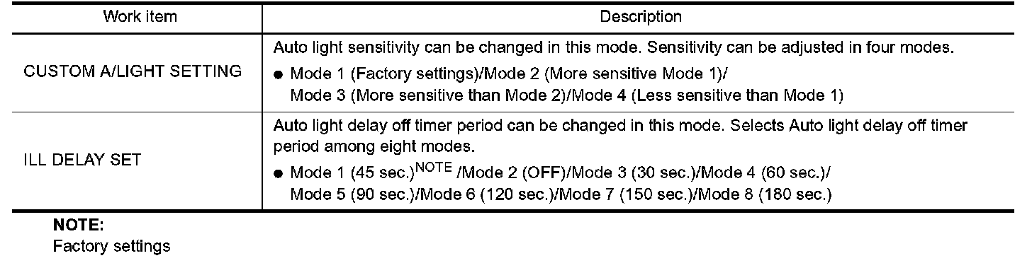 3. Touch "CUSTOM A/LIGHT SETTING" on "SELECT WORK ITEM" screen.