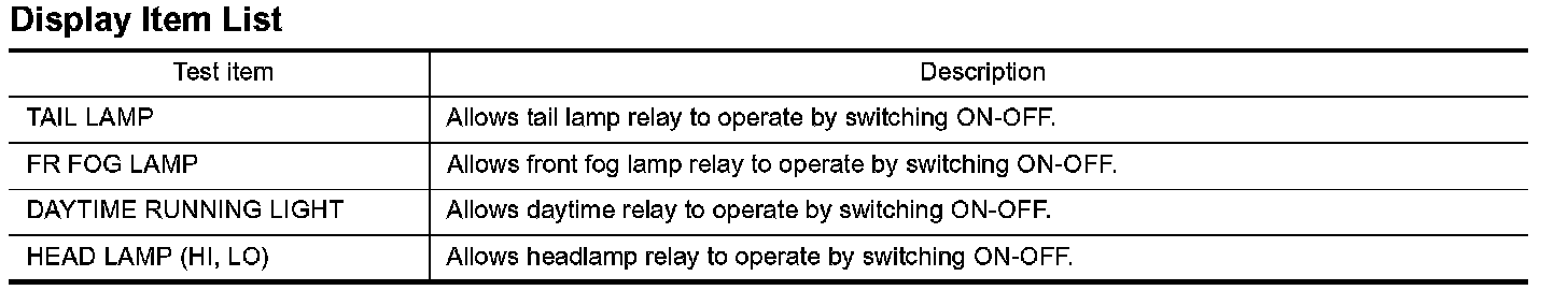1. Touch "HEAD LAMP" on "SELECT TEST ITEM" screen.