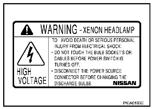 - Xenon headlamp includes high voltage generating part. Be sure to disconnect battery negative cable (negative terminal) or power fuse before removing, installing, or touching the xenon headlamp (including lamp bulb).