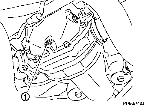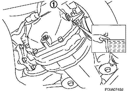 1. Remove filler plug (1). Fill with new gear oil until oil level reaches the specified level near filler plug mounting hole.