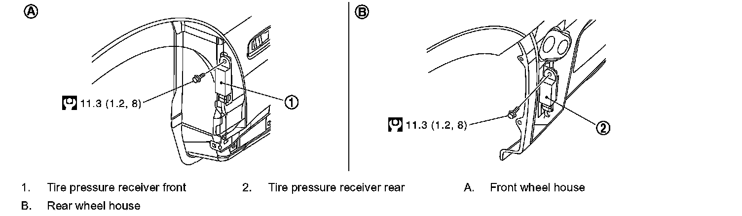 3. Remove fixing bolt, then remove tire pressure receiver from vehicle.