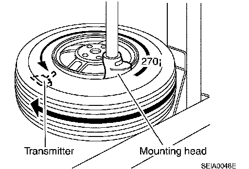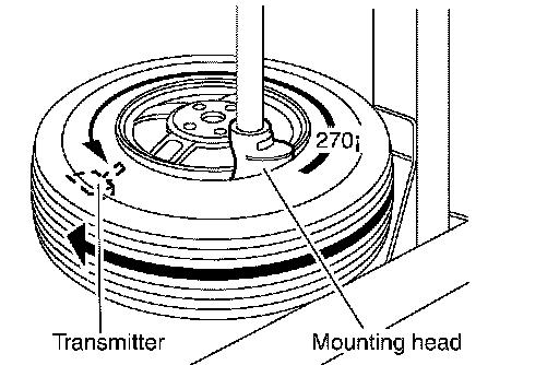 3. Place wheel on turntable of tire machine. Ensure that transmitter is 270 degree from mounting head when second side of tire is fitted.